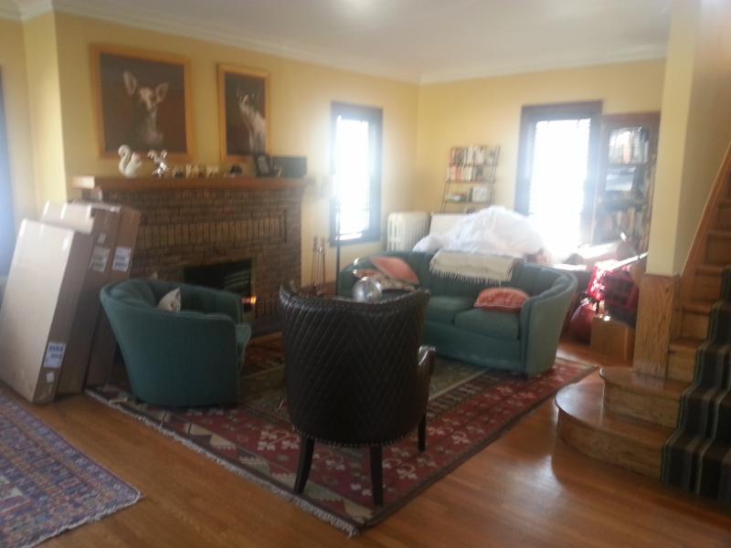 The sellers of this home were moving cross-country, so we staged the home with rental furniture to create a clean, inviting look to this spacious living room!