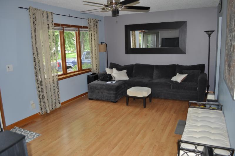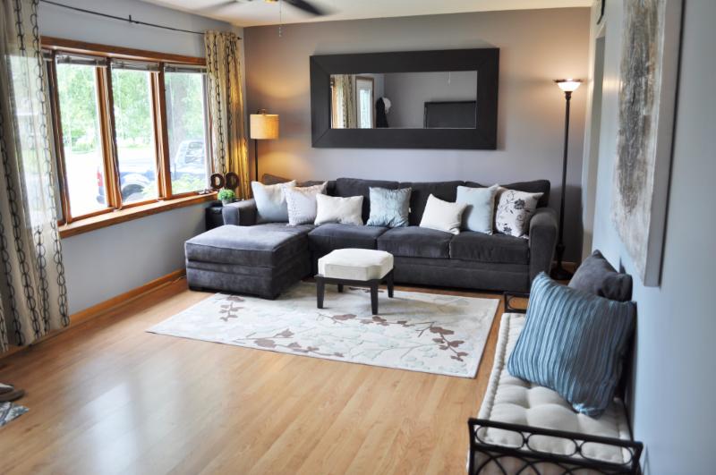 This before and after is from the same home as the previous post. We suggested removing wallpaper and clutter and adjusting the furniture layout.